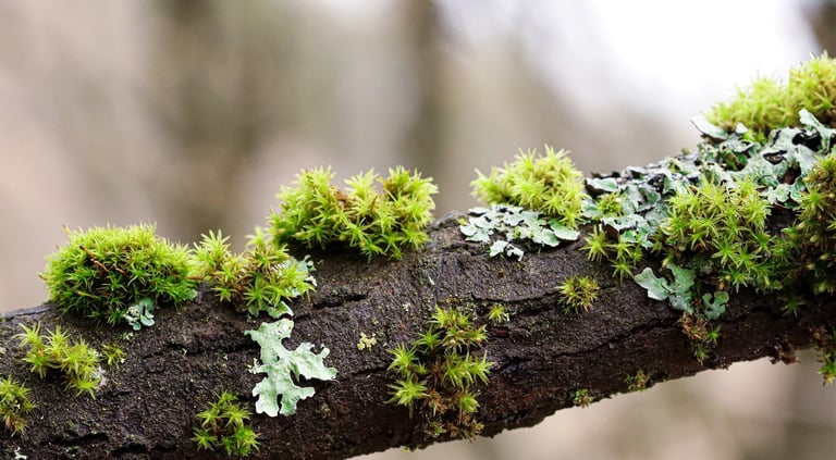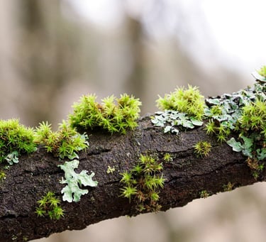 Lichens are a magical complex life form that is a symbotic association between two separate organisms, algae and fungi.